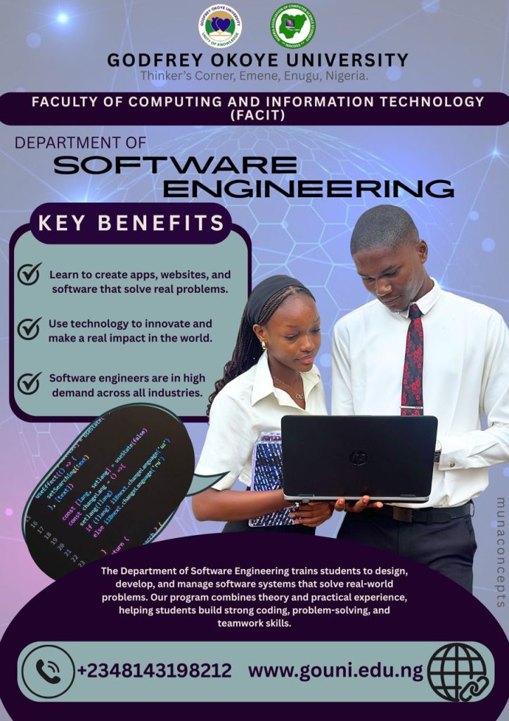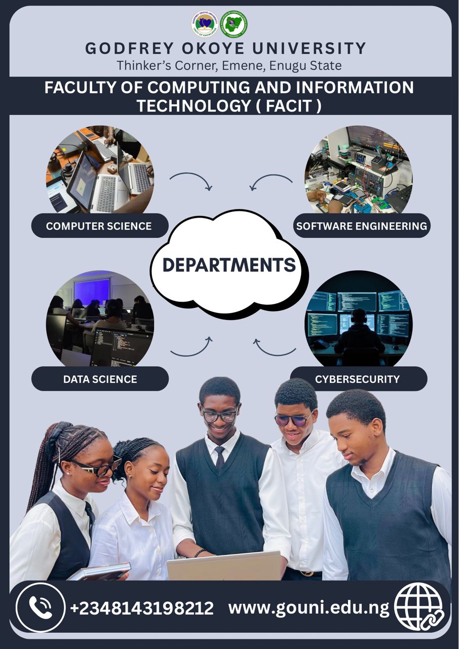 Are you ready to build a future in one of the world’s most influential and fast-growing fields? At Godfrey Okoye University, our Computing and Information Technology programmes are designed to equip students with the knowledge, technical competence, and practical skills needed to excel in today’s digital world.