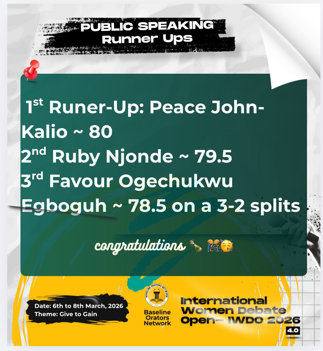 Godfrey Okoye University continues to make a strong impression on the international stage as its students recorded remarkable performances at the International Women Debate Open (IWDO) 2026, organized by the Baseline Orators Network from March 6th to 8th. Among the outstanding participants was Egbogu Favour Ogechukwu, who finished as 3rd Runner-Up in the Public Speaking...
