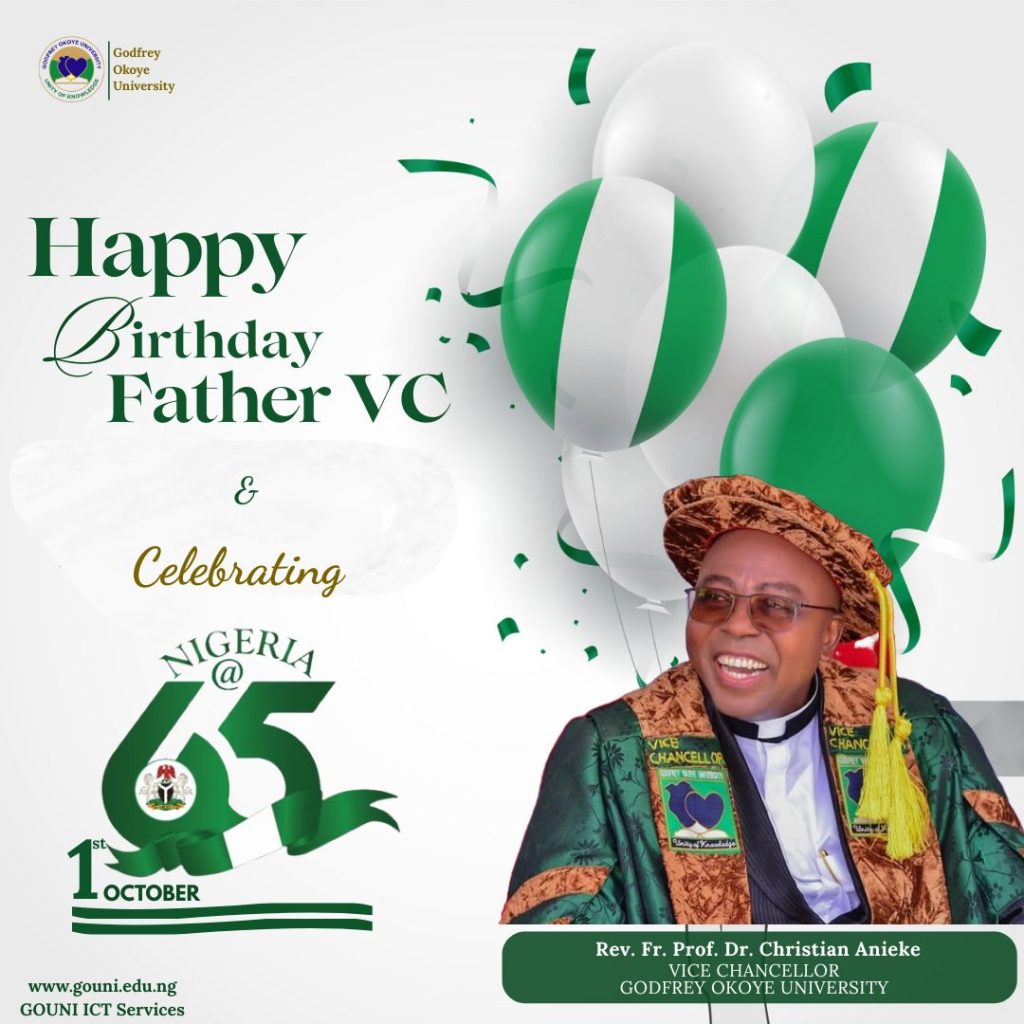 As Nigeria marks her 65th Independence Anniversary today, we also celebrate our beloved Vice-Chancellor, Rev. Fr. Prof. Christian Anieke, on his 60th birthday.