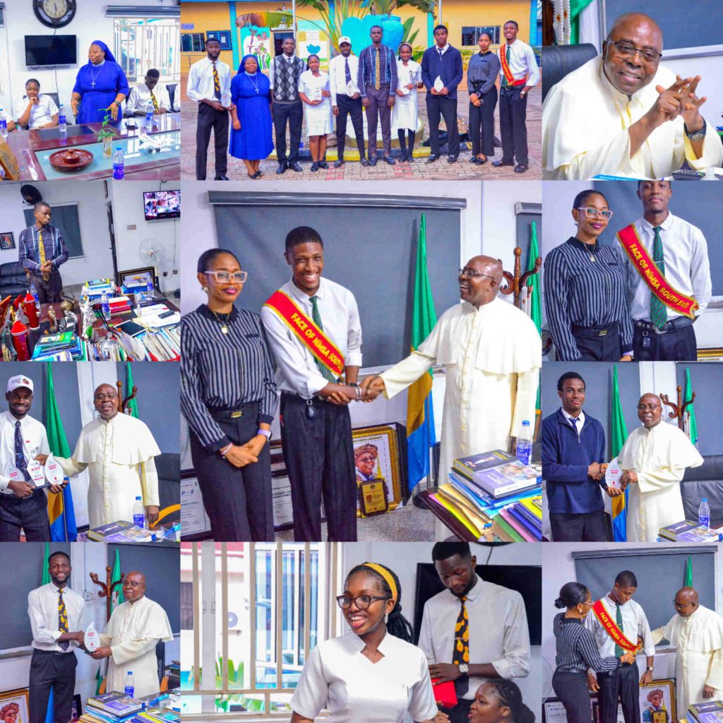 The Vice-Chancellor, Rev. Fr. Prof. Christian Anieke, warmly received the team, commending their exceptional performance and the prestige they continue to bring to the University. A key highlight of the visit was the formal handover of the Face of NiMSA South-East title from the outgoing holder, Precious Faith of Enugu State University Teaching Hospital (Parklane), to the newly crowned recipient, Aguigwo Gerald Somtochukwu of Godfrey Okoye University.