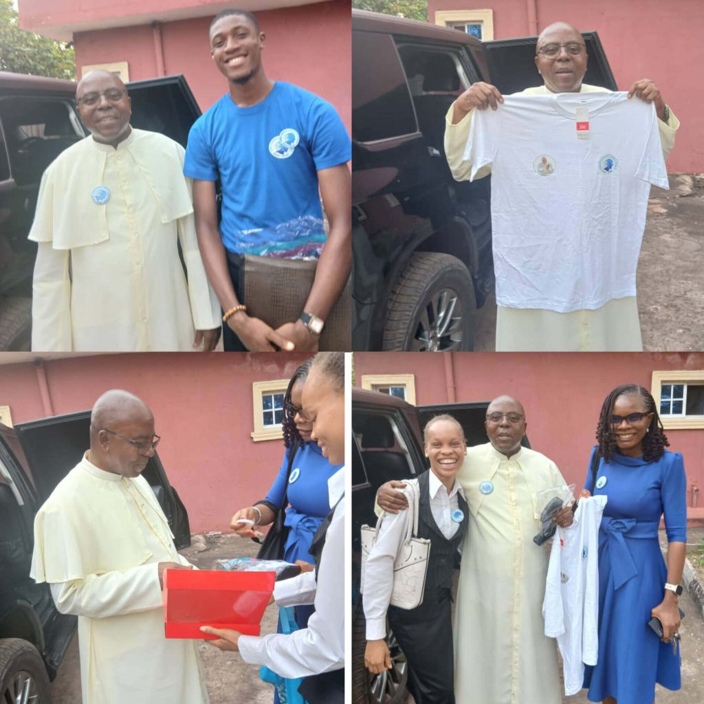 Later on, the Director of Competitions, the President and the Vice President of GOUNIDC presented the DICOM Brooch, plaque and T-shirt to the Vice-Chancellor, Reverend Father Professor Christian Anieke.